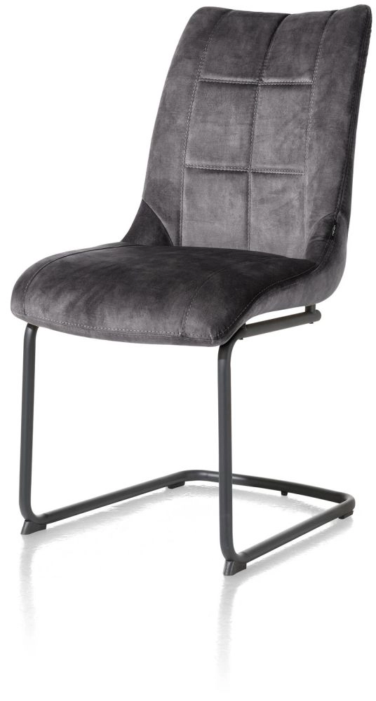Eetkamerstoel Mischa straalt aan alle kanten comfort uit, van het design tot de stoffering. Mischa is in verschillende uitvoeringen leverbaar. De stoel is bekleed met de stof Karese: een zachte, veloursachtige stof met een luxe uitstraling. Voor deze variant van Mischa is gekozen voor de kleur antraciet. In plaats van stoelpoten heeft deze stoel een zwart metalen swingframe. Op de rugleuning is een praktische handgreep gemonteerd; hiermee is de stoel makkelijk te verplaatsen.