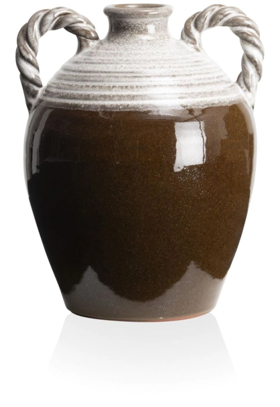 Deze prachtige vaas Nera van COCOmaison heeft de vorm van een klassieke Romeinse kruik. Een extra leuk detail zijn de sierlijke gedraaide handvaten, die deze vaas bijzonder stijlvol maken. De vaas is gemaakt van 100% keramiek met een prachtige glazuurlaag in het donkerbruin en wit, die bij elke vaas helemaal uniek is. Vaas Nera is 26 cm hoog en perfect te combineren met de andere vaas en schaal Nera.