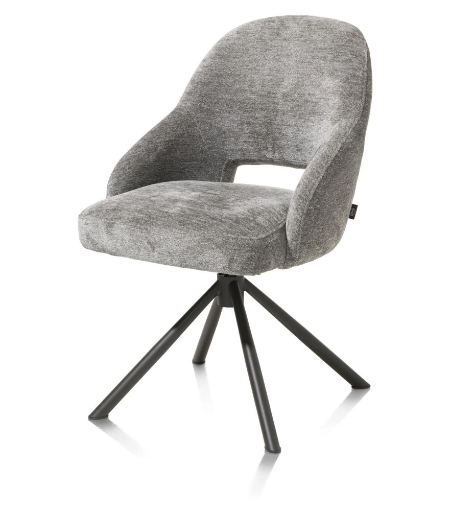 Deze stoel Nikolas uit de Henders & Hazel collectie heeft een speels, open design dat over heel de stoel doorloopt. De stoel is bekleed met stof Enzo, een chenillestof met verschillende kleurtinten die mooi door elkaar geweven zijn. Deze versie is uitgevoerd in kleur grijs, maar er zijn ook nog 3 andere zachte kleurtinten verkrijgbaar! Deze versie van de stoel is uitgevoerd als draaibare versie met automatische terugdraaifunctie, maar er is ook een versie met 4 vaste poten in de kleur grafiet.
