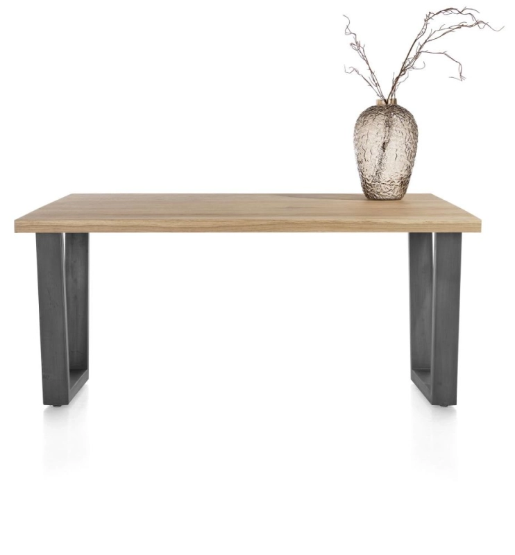 Breng de natuur in huis met Nyborg! Nyborg is een eettafel van natuurlijk gekleurd eikenfineer. De twee V-vormige metalen poten geven de tafel een moderne uitstraling. Het tafelblad heeft een afmeting van 150 x 100 cm. Deze opvallende eettafel is afgewerkt met een platinalak, die goed beschermt tegen vlekken. De tafel is in verschillende uitvoeringen verkrijgbaar. Tip: combineer de tafel met meubels uit de Nystead-collectie voor een prachtig harmonieus geheel!