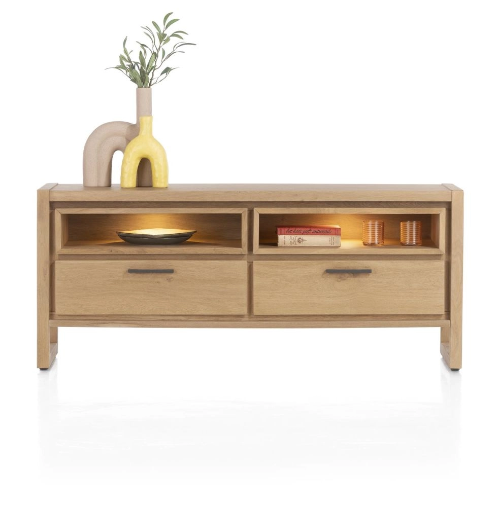 Nystead, lowboard 140 cm. - 2-laden + 2-niches (+ LED)