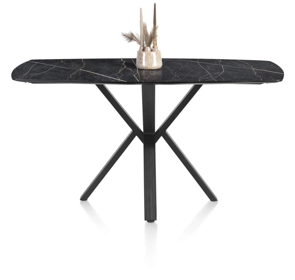 De tafels uit collectie Palace zijn verkrijgbaar in heel wat verschillende formaten, in 5 verschillende kleuren en met 2 verschillende onderstellen. In totaal zijn er zo wel 100 verschillende tafelcombinaties mogelijk! Deze bartafel heeft een centraal onderstel, heeft een tafelblad van 180x110cm en is uitgevoerd in een marmerlook in de kleur onyx. Het tafelblad is gemaakt van Primo Laminato (HPL), een uiterst onderhoudsvriendelijk materiaal en het onderstel is van zwart metaal. Is deze tafel toch niet wat je zoekt? Er zijn nog heel wat andere kleuren en formaten verkrijgbaar.