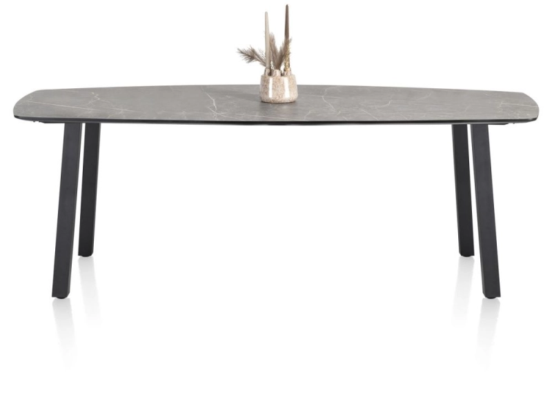 De tafels uit collectie Palace zijn verkrijgbaar in heel wat verschillende formaten, in 5 verschillende kleuren en met 2 verschillende onderstellen. In totaal zijn er zo wel 100 verschillende tafelcombinaties mogelijk! Deze bartafel heeft een onderstel met 4 poten, heeft een groot tafelblad van 240x115cm en is uitgevoerd in een marmerlook in de kleur lichtgrijs. Het tafelblad is gemaakt van Primo Laminato (HPL), een uiterst onderhoudsvriendelijk materiaal en het onderstel is van zwart metaal. Is deze tafel toch niet wat je zoekt? Er zijn nog heel wat andere kleuren en formaten verkrijgbaar.