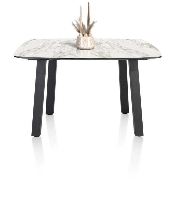 De tafels uit collectie Palace zijn verkrijgbaar in heel wat verschillende formaten, in 5 verschillende kleuren en met 2 verschillende onderstellen. In totaal zijn er zo wel 100 verschillende tafelcombinaties mogelijk! Deze tafel heeft een onderstel met 4 poten, heeft een compact tafelblad van 160x110cm en is uitgevoerd in een marmerlook in de kleur wit. Het tafelblad is gemaakt van Primo Laminato (HPL), een uiterst onderhoudsvriendelijk materiaal en het onderstel is van zwart metaal. Is deze tafel toch niet wat je zoekt? Er zijn nog heel wat andere kleuren en formaten verkrijgbaar!