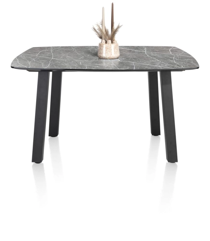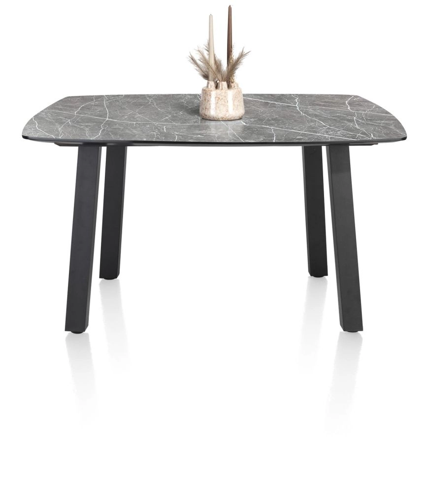 De tafels uit collectie Palace zijn verkrijgbaar in heel wat verschillende formaten, in 5 verschillende kleuren en met 2 verschillende onderstellen. In totaal zijn er zo wel 100 verschillende tafelcombinaties mogelijk! Deze tafel heeft een onderstel met 4 poten, heeft een tafelblad van 180x110cm en is uitgevoerd in een marmerlook in de kleur lichtgrijs. Het tafelblad is gemaakt van Primo Laminato (HPL), een uiterst onderhoudsvriendelijk materiaal en het onderstel is van zwart metaal. Is deze tafel toch niet wat je zoekt? Er zijn nog heel wat andere kleuren en formaten verkrijgbaar!