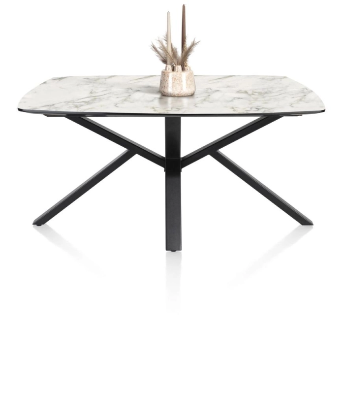 De tafels uit collectie Palace zijn verkrijgbaar in heel wat verschillende formaten, in 5 verschillende kleuren en met 2 verschillende onderstellen. In totaal zijn er zo wel 100 verschillende tafelcombinaties mogelijk! Deze tafel heeft een centraal onderstel, heeft een tafelblad van 180x110cm en is uitgevoerd in een marmerlook in de kleur wit. Het tafelblad is gemaakt van Primo Laminato (HPL), een uiterst onderhoudsvriendelijk materiaal en het onderstel is van zwart metaal. Is deze tafel toch niet wat je zoekt? Er zijn nog heel wat andere kleuren en formaten verkrijgbaar.