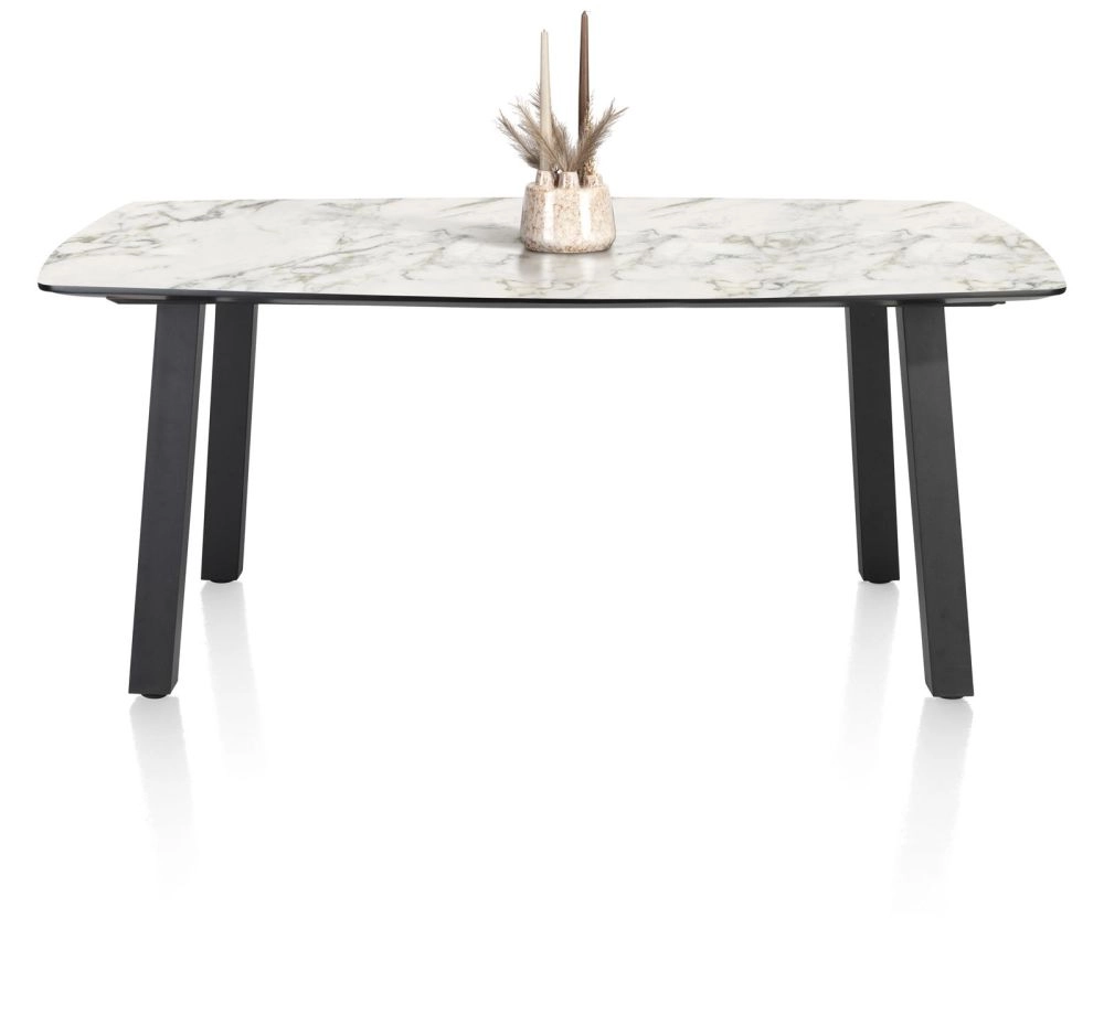 De tafels uit collectie Palace zijn verkrijgbaar in heel wat verschillende formaten, in 5 verschillende kleuren en met 2 verschillende onderstellen. In totaal zijn er zo wel 100 verschillende tafelcombinaties mogelijk! Deze tafel heeft een onderstel met 4 poten, heeft een tafelblad van 210x110cm en is uitgevoerd in een marmerlook in de kleur wit. Het tafelblad is gemaakt van Primo Laminato (HPL), een uiterst onderhoudsvriendelijk materiaal en het onderstel is van zwart metaal. Is deze tafel toch niet wat je zoekt? Er zijn nog heel wat andere kleuren en formaten verkrijgbaar!