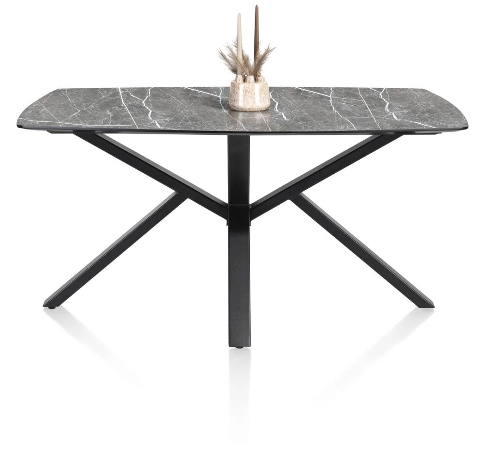 De tafels uit collectie Palace zijn verkrijgbaar in heel wat verschillende formaten, in 5 verschillende kleuren en met 2 verschillende onderstellen. In totaal zijn er zo wel 100 verschillende tafelcombinaties mogelijk! Deze tafel heeft een centraal onderstel, heeft een tafelblad van 210x110cm en is uitgevoerd in een marmerlook in de kleur lichtgrijs. Het tafelblad is gemaakt van Primo Laminato (HPL), een uiterst onderhoudsvriendelijk materiaal en het onderstel is van zwart metaal. Is deze tafel toch niet wat je zoekt? Er zijn nog heel wat andere kleuren en formaten verkrijgbaar.