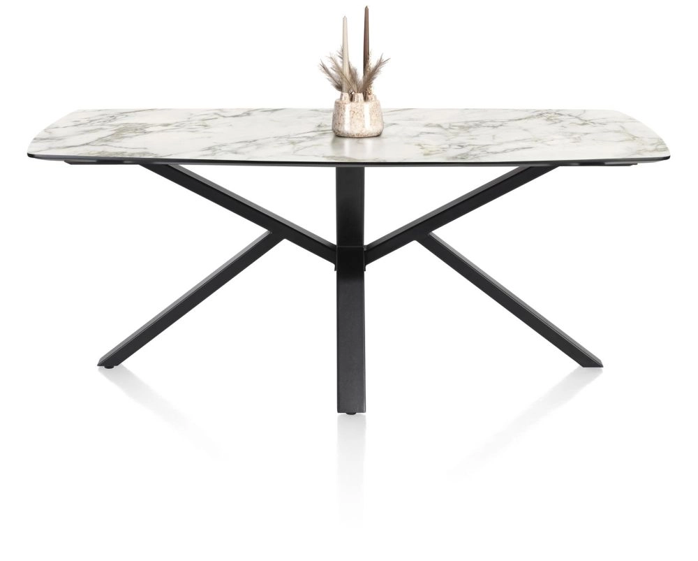 De tafels uit collectie Palace zijn verkrijgbaar in heel wat verschillende formaten, in 5 verschillende kleuren en met 2 verschillende onderstellen. In totaal zijn er zo wel 100 verschillende tafelcombinaties mogelijk! Deze tafel heeft een centraal onderstel, heeft een groot tafelblad van 240x115cm en is uitgevoerd in een marmerlook in de kleur wit. Het tafelblad is gemaakt van Primo Laminato (HPL), een uiterst onderhoudsvriendelijk materiaal en het onderstel is van zwart metaal. Is deze tafel toch niet wat je zoekt? Er zijn nog heel wat andere kleuren en formaten verkrijgbaar.