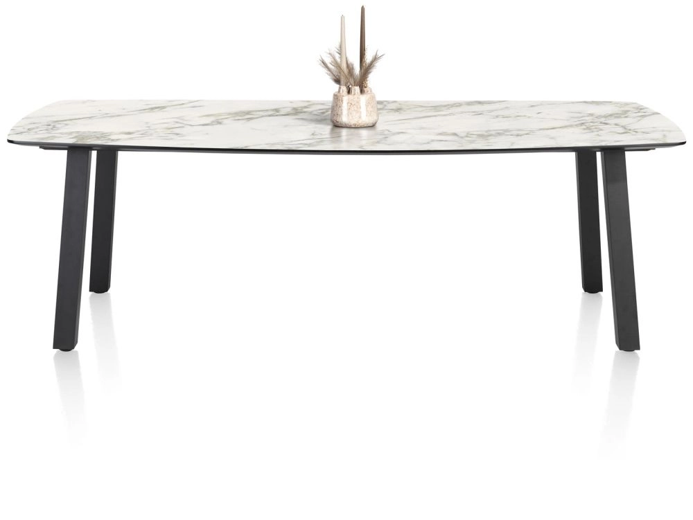 De tafels uit collectie Palace zijn verkrijgbaar in heel wat verschillende formaten, in 5 verschillende kleuren en met 2 verschillende onderstellen. In totaal zijn er zo wel 100 verschillende tafelcombinaties mogelijk! Deze tafel heeft een onderstel met 4 poten, heeft een extra groot tafelblad van 270x115cm en is uitgevoerd in een marmerlook in de kleur wit. Het tafelblad is gemaakt van Primo Laminato (HPL), een uiterst onderhoudsvriendelijk materiaal en het onderstel is van zwart metaal. Is deze tafel toch niet wat je zoekt? Er zijn nog heel wat andere kleuren en formaten verkrijgbaar!