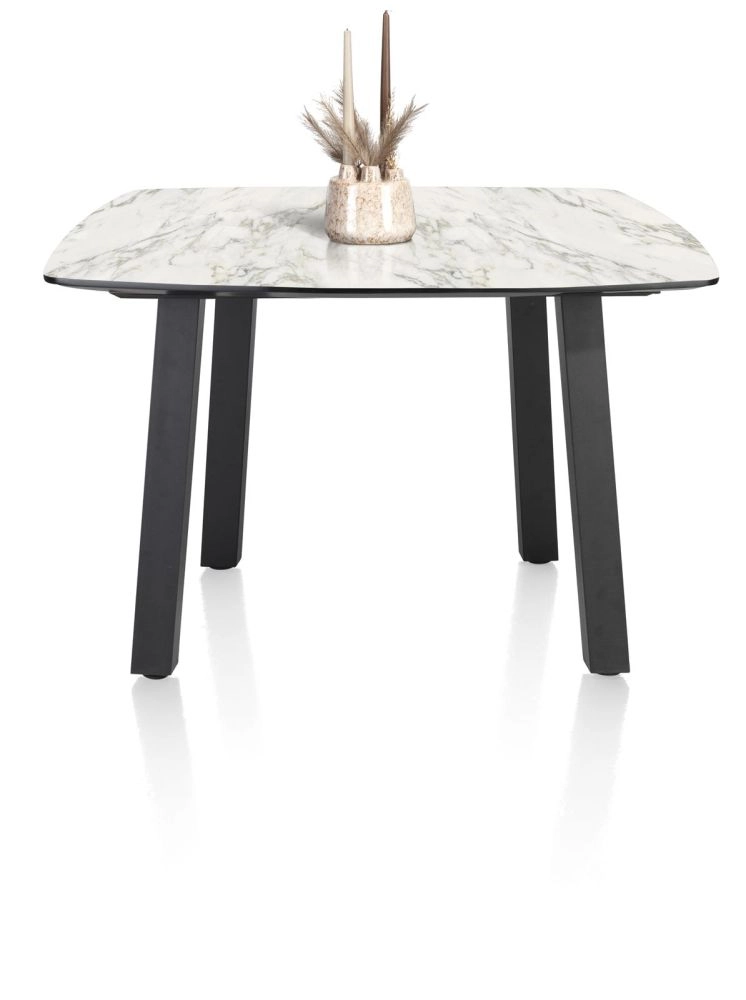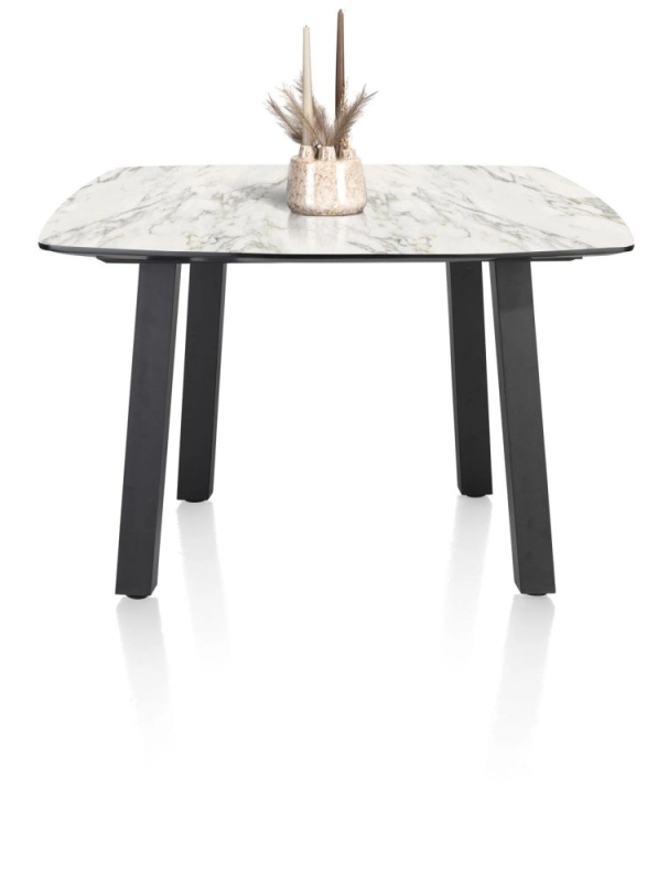 De tafels uit collectie Palace zijn verkrijgbaar in heel wat verschillende formaten, in 5 verschillende kleuren en met 2 verschillende onderstellen. In totaal zijn er zo wel 100 verschillende tafelcombinaties mogelijk! Deze tafel heeft een onderstel met 4 poten, heeft een compact ovaal tafelblad van 150x120cm en is uitgevoerd in een marmerlook in de kleur wit. Het tafelblad is gemaakt van Primo Laminato (HPL), een uiterst onderhoudsvriendelijk materiaal en het onderstel is van zwart metaal. Is deze tafel toch niet wat je zoekt? Er zijn nog heel wat andere kleuren en formaten verkrijgbaar!