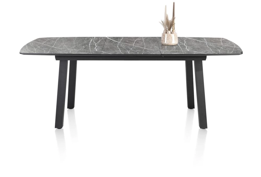 De tafels uit collectie Palace zijn verkrijgbaar in heel wat verschillende formaten, in 5 verschillende kleuren en met 2 verschillende onderstellen. In totaal zijn er zo wel 100 verschillende tafelcombinaties mogelijk! Deze uitschuiftafel heeft een onderstel met 4 poten, heeft een compact tafelblad van 160x110cm, kan met 50cm verlengd worden tot 210cm en is uitgevoerd in een marmerlook in de kleur lichtgrijs. Het tafelblad is gemaakt van Primo Laminato (HPL), een uiterst onderhoudsvriendelijk materiaal en het onderstel is van zwart metaal. Is deze tafel toch niet wat je zoekt? Er zijn nog heel wat andere kleuren en formaten verkrijgbaar!
