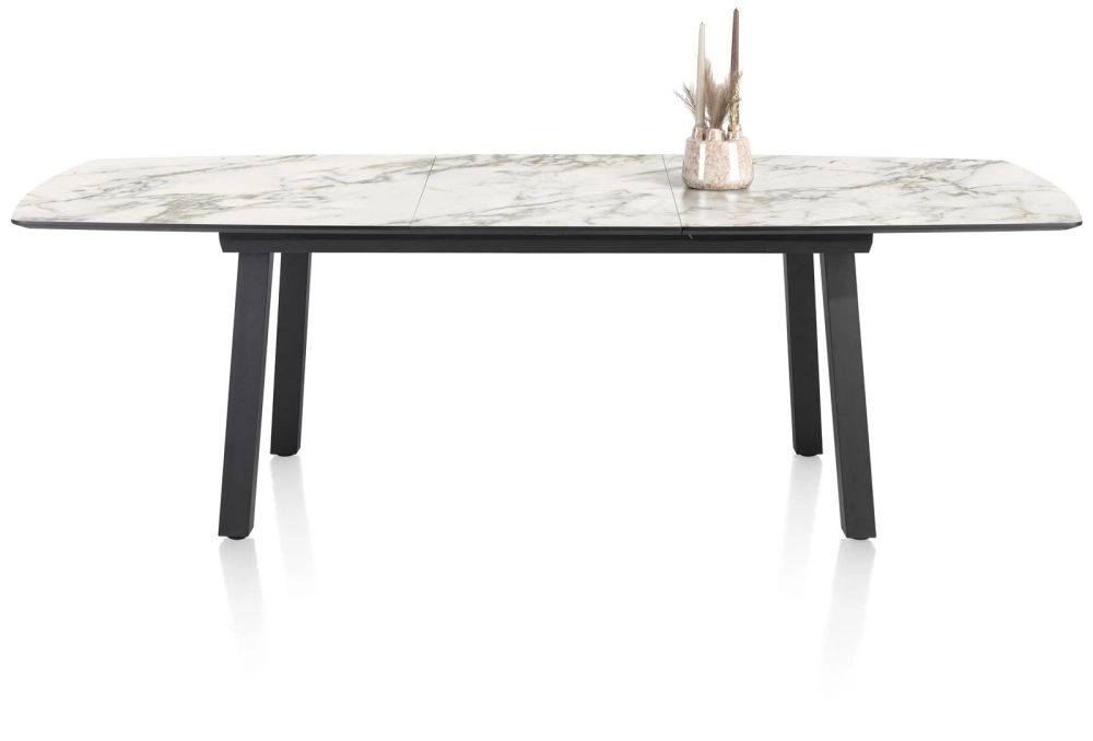 De tafels uit collectie Palace zijn verkrijgbaar in heel wat verschillende formaten, in 5 verschillende kleuren en met 2 verschillende onderstellen. In totaal zijn er zo wel 100 verschillende tafelcombinaties mogelijk! Deze uitschuiftafel heeft een onderstel met 4 poten, heeft een tafelblad van 190x110cm, kan met 60cm verlengd worden tot 250cm en is uitgevoerd in een marmerlook in de kleur wit. Het tafelblad is gemaakt van Primo Laminato (HPL), een uiterst onderhoudsvriendelijk materiaal en het onderstel is van zwart metaal. Is deze tafel toch niet wat je zoekt? Er zijn nog heel wat andere kleuren en formaten verkrijgbaar!
