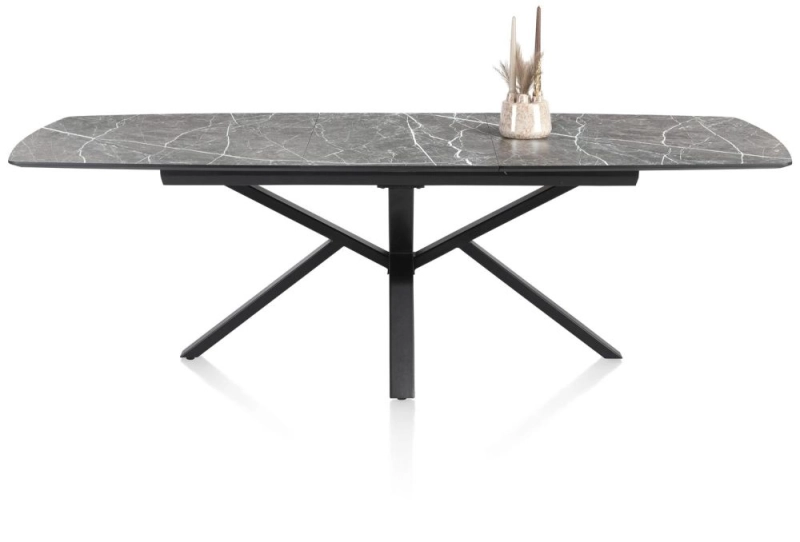 De tafels uit collectie Palace zijn verkrijgbaar in heel wat verschillende formaten, in 5 verschillende kleuren en met 2 verschillende onderstellen. In totaal zijn er zo wel 100 verschillende tafelcombinaties mogelijk! Deze uitschuiftafel heeft een centraal onderstel, heeft een tafelblad van 190x110cm, kan met 60cm verlengd worden tot 250cm en is uitgevoerd in een marmerlook in de kleur lichtgrijs. Het tafelblad is gemaakt van Primo Laminato (HPL), een uiterst onderhoudsvriendelijk materiaal en het onderstel is van zwart metaal. Is deze tafel toch niet wat je zoekt? Er zijn nog heel wat andere kleuren en formaten verkrijgbaar!