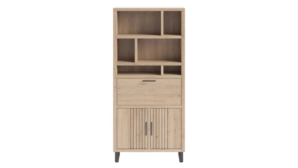 Pavie, bergkast 100 cm - 2-deuren + 1-klep + 6-niches (+ LED) - natural