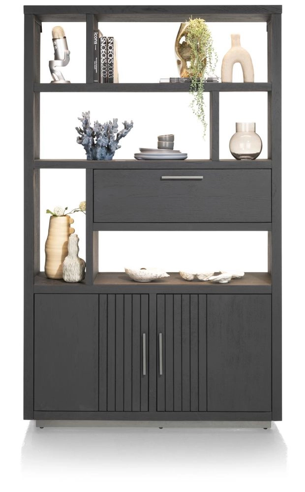 Pavie, bergkast open 125 cm - 2-deuren + 1-klep + 6-niches (+ LED) - castle black