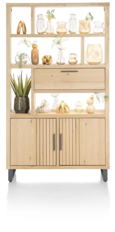 Pavie, bergkast open 125 cm - 2-deuren + 1-klep + 6-niches (+ LED) - natural