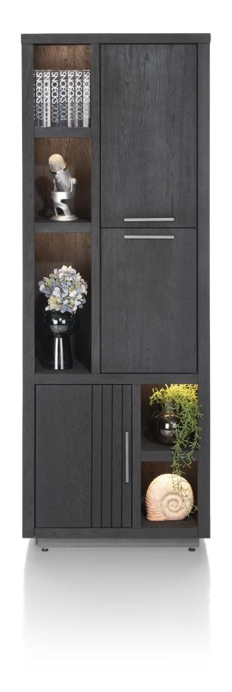 Pavie, bergkast smal 75 cm - 3-deuren + 5-niches (+ LED) - castle black