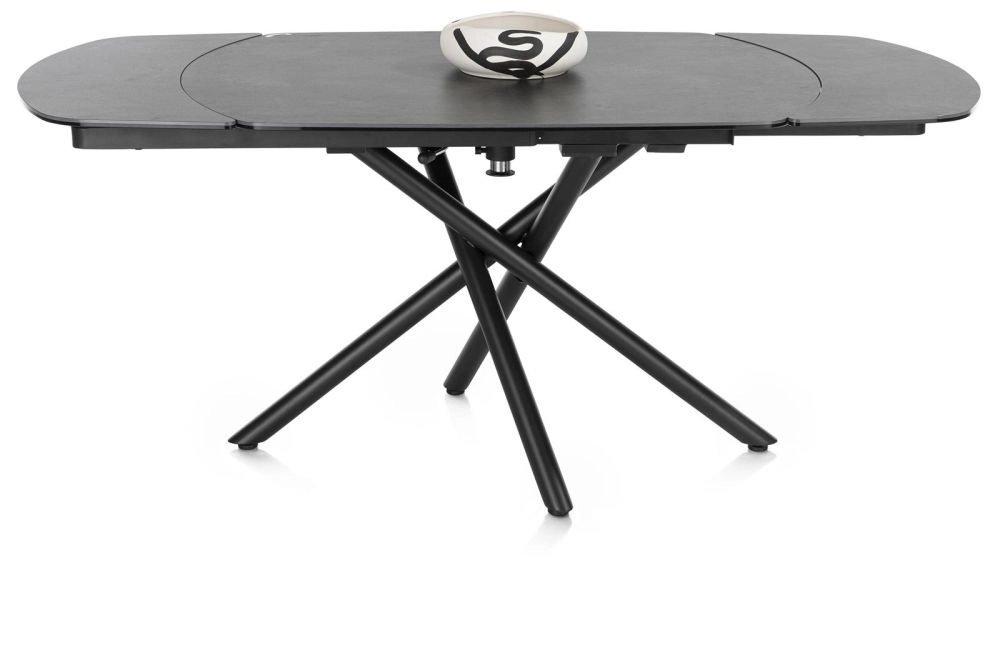 Wil je een eettafel die niet teveel plaats inneemt, maar waaraan je wel al je vrienden kunt uitnodigen? Dan is de Preston uitschuiftafel precies wat je zoekt. Hij heeft een basisformaat van 120x90cm en fraaie afgeronde hoeken. Met een super handig draaimechanisme vergroot je deze compacte tafel echter tot een ruime tafel van 180 cm wanneer je maar wilt! De centrale poot zorgt ervoor dat je aan alle kanten prettig kunt zitten en het oersterke keramiek op glas blad maakt de tafel uitermate 'feestbestendig'. Dit is de antraciet uitvoering, maar hij is er ook in een lichte marmerlook.