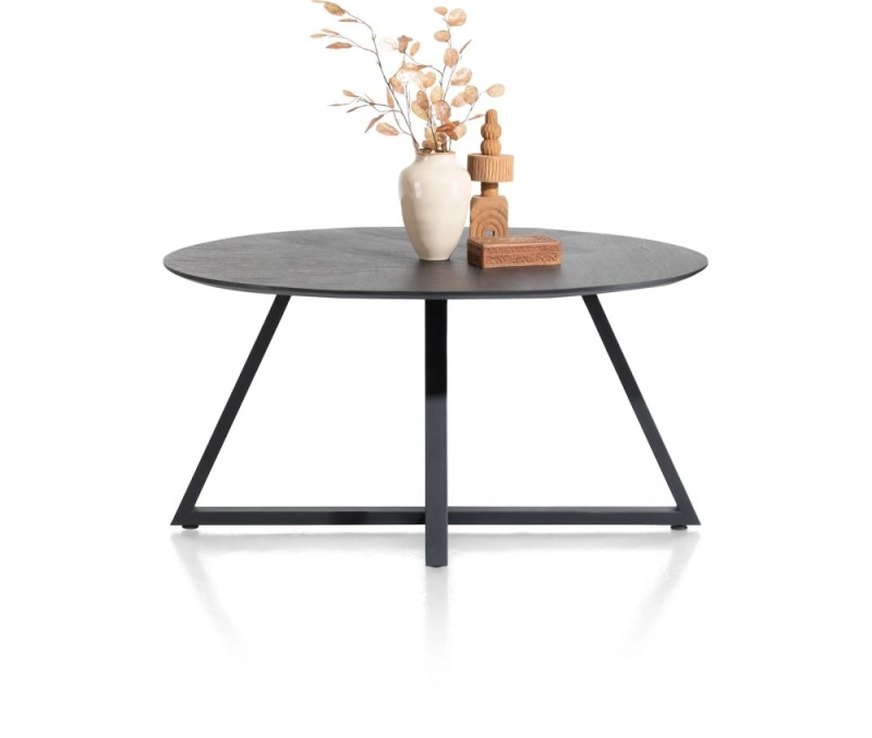 De opvallende zwarte kruispoot en het elipsvormige tafelblad met een speciaal mozaïekpatroon maken van tafel Ridgefield een echte eyecatcher in je interieur. Deze tafel heeft een tafelblad van 150 cm lang en is 120 cm breed. Door de speciale vorm van de tafel, die mooi contrasteert met de strakke lijnen van de meubels uit deze collectie, is de tafel bovendien ook nog erg aangenaam om met veel mensen tegelijk aan te zitten. De tafel is uitgevoerd met een tafelblad in castle antraciet en past ideaal in een industrieel interieur.
