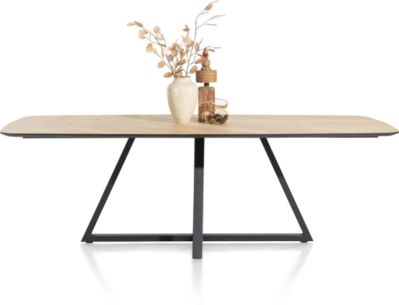 Deze extra grote eetkamertafel uit collectie Ridgefield heeft niet alleen een mooie ovale vorm met afgeronde hoeken, de tafel heeft ook een opvallende centrale kruispoot en een mozaïekpatroon. De tafel is verkrijgbaar in twee kleuren: het stoere castle antraciet dat perfect past in industriële interieurs en een Natural-versie met een frisse natuurlijke houtkleur. Deze versie meet 240 cm, maar er is ook een versie van 210 cm. Voor welke kies jij?