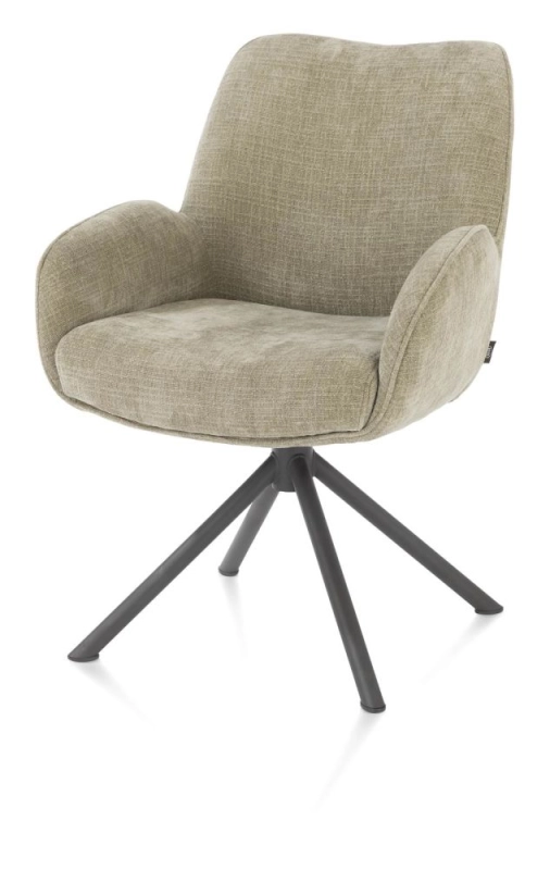 Riley, armstoel 4-poots grafiet frame - draaibaar + pocket - stof Cadiz - Olijf