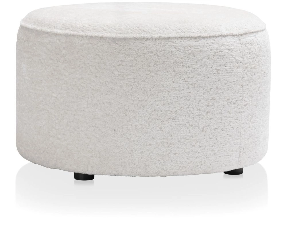 Met het zitsysteem Roan van COCOmaison kun je zelf een zithoekje samenstellen door verschillende elementen te combineren. De poefs, de bank en de fauteuil passen door hun vorm namelijk perfect samen. Alle items zijn bekleed met een trendy stof en zijn verkrijgbaar in twee kleuren. Dit is de ronde poef in kleur crème. Deze is gemaakt van 40% multiplex, 30% schuim en 30% stof. De poef is 44 cm hoog en heeft een diameter van 74 cm. Een handig detail: er worden twee sets poten meegeleverd, waardoor je de fauteuil op een standaard zithoogte kunt plaatsen, maar ook op een hoogte die geschikt is voor gebruik aan een eettafel.