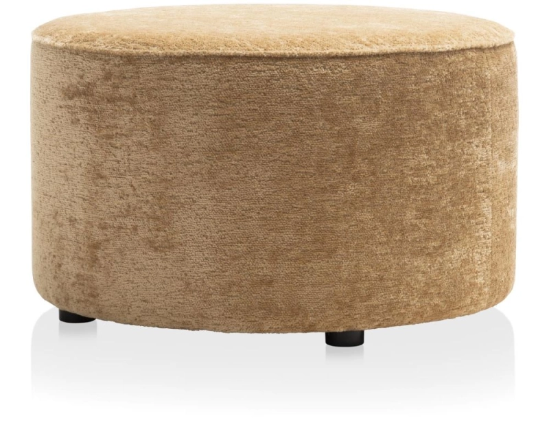 Met het zitsysteem Roan van COCOmaison kun je zelf een zithoekje samenstellen door verschillende elementen te combineren. De poefs, de bank en de fauteuil passen door hun vorm namelijk perfect samen. Alle items zijn bekleed met een trendy stof en zijn verkrijgbaar in twee kleuren. Dit is de ronde poef in kleur oker. Deze is gemaakt van 40% multiplex, 30% schuim en 30% stof. De poef is 44 cm hoog en heeft een diameter van 74 cm. Een handig detail: er worden twee sets poten meegeleverd, waardoor je de fauteuil op een standaard zithoogte kunt plaatsen, maar ook op een hoogte die geschikt is voor gebruik aan een eettafel.