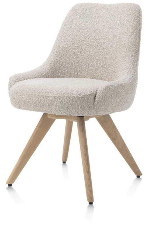 Rocco, eetkamerstoel - draaibaar + pocket - naturel eiken - stof Brioni - Creme