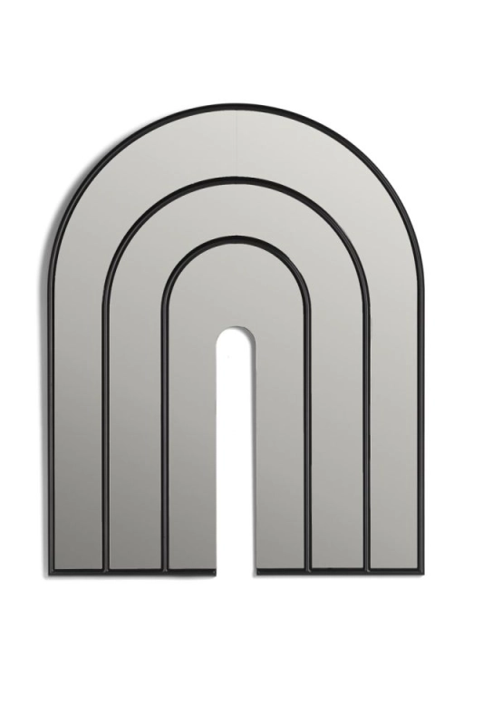 Maak kennis met de Rufo spiegel van COCOmaison, een echte blikvanger in elke ruimte! Deze spiegel van 80 x 100 cm heeft een speelse regenboogvorm en subtiele zwarte lijnen, perfect passend in een modern of industrieel interieur. Dankzij het veelzijdige ontwerp kun je hem zowel horizontaal als verticaal ophangen. Extra leuk: hang er twee naast elkaar voor een opvallend, symmetrisch effect aan je muur!