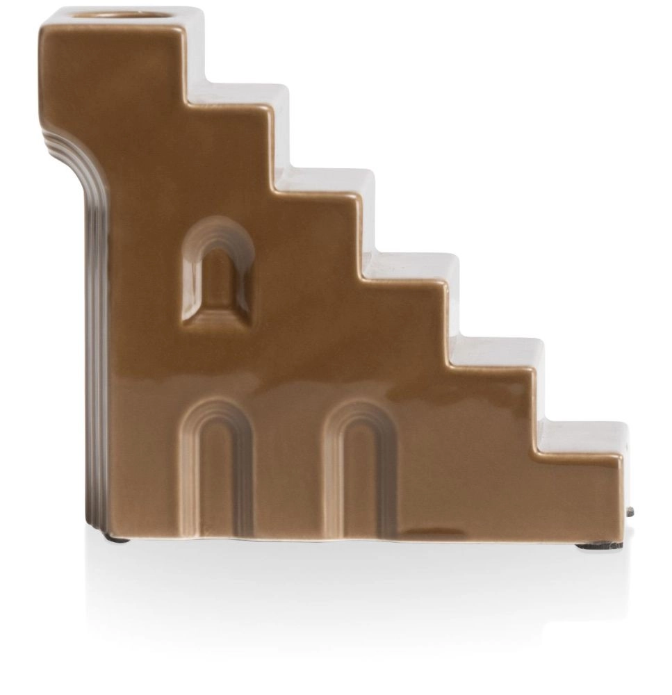 Kandelaar Skira heeft de vorm van een trap met kenmerkende bogen, zoals we het van de klassieke Romeinse architectuur kennen. Die klassieke uitstraling komt ook terug in de chique bruine kleur van de kandelaar, die is gemaakt van 90% en 10% glazuur. Met deze betoverende kandelaar van 12 cm hoog til jij je decoratie letterlijk naar een hoger niveau. Ontdek ook de andere accessoires van COCOmaison met een klassieke knipoog en combineer ze voor een mooi, elegant geheel.