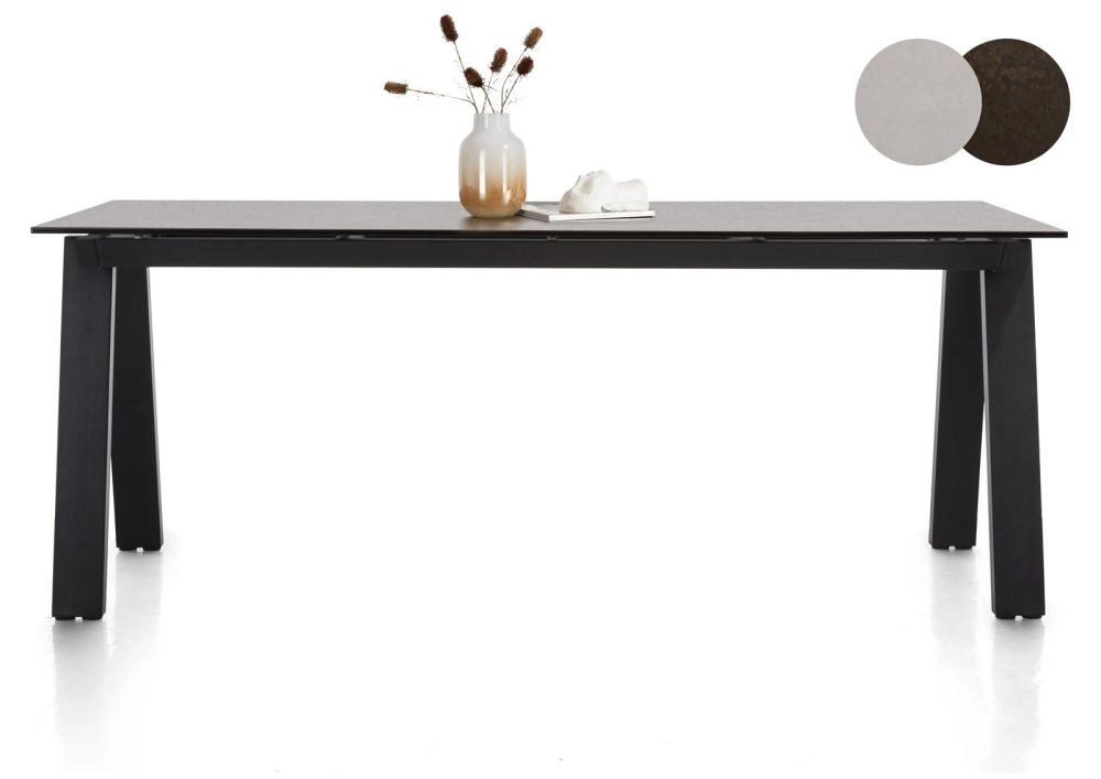 Kenmerkend voor de Stanford-collectie is het tafelblad van keramiek op glas. Deze eetkamertafel is 200 x 100 cm, de poten zijn van zwart metaal en het keramische tafelblad heeft de kleur crème. De combinatie van keramiek met metaal geeft deze eetkamertafel een modern design met een chique uitstraling.