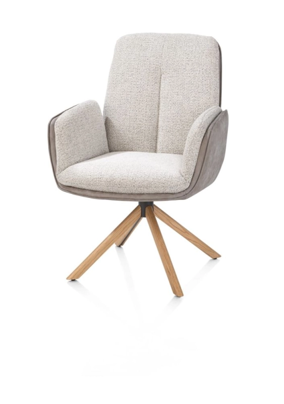 Theros, Armstoel 4-poots naturel eiken met relax-systeem - draaibaar - stof oregon/sevilla - Kiezel
