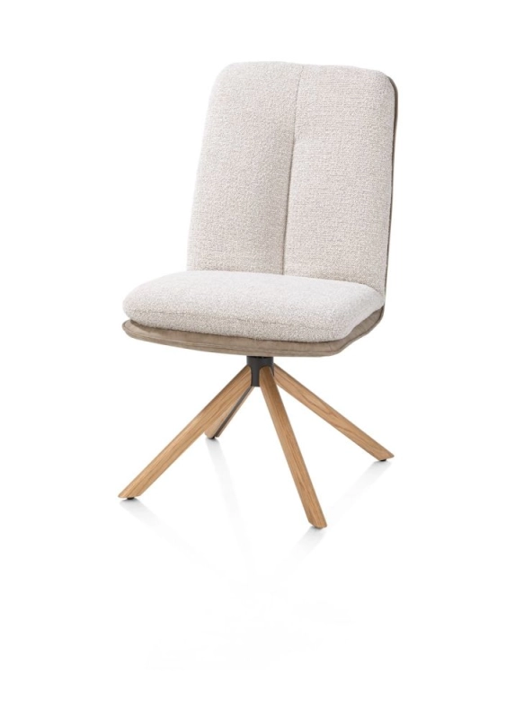 Theros, Eetkamerstoel 4-poots naturel eiken met relax-systeem - draaibaar - stof oregon/sevilla - beige