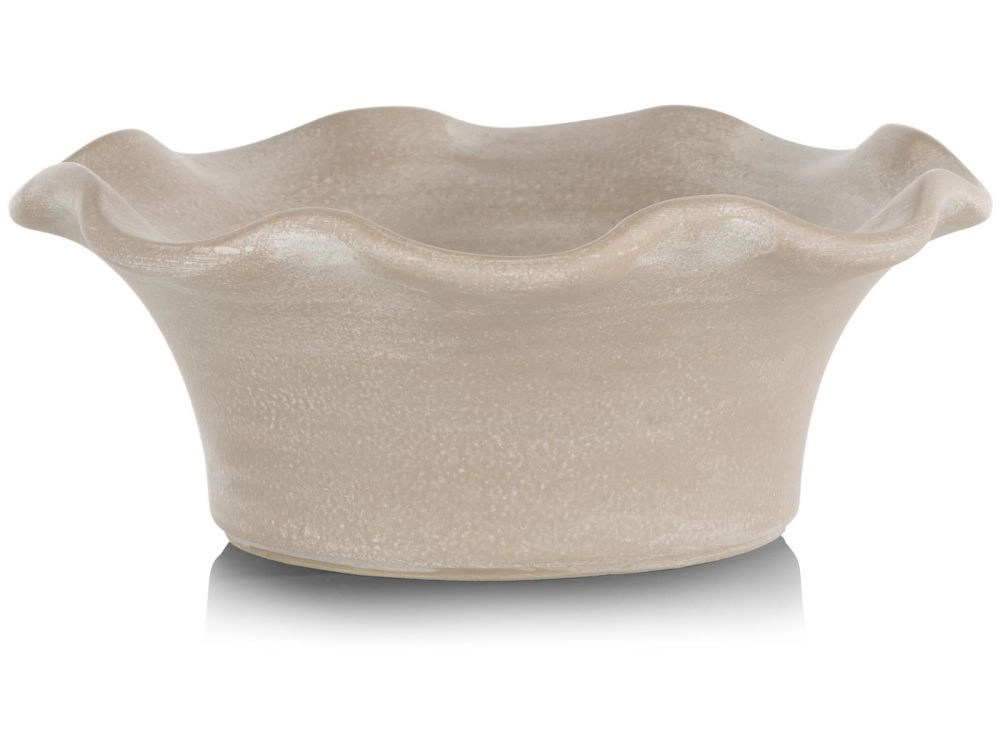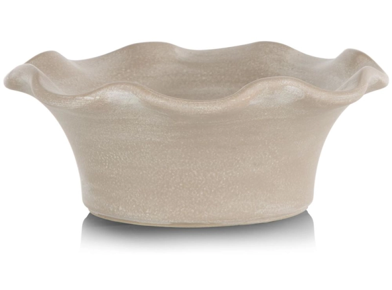 De oorsprong van de naam WAVE laat zich makkelijk raden: deze stijlvolle reeks potten en schalen kenmerkt zich door een verfijnde golfende rand. WAVE van COCOmaison wordt geproduceerd in Portugal, van 100% aardewerk. Elk object uit deze serie is met de hand gemaakt en er zijn dus geen twee stuks hetzelfde! De kleur is beige, maar ook in de kleurnuance is iedere pot uniek. De schaal is verkrijgbaar in drie maten, waarvan dit de kleinste is. Deze schaal heeft een doorsnede van 25cm bij een hoogte van 11cm.