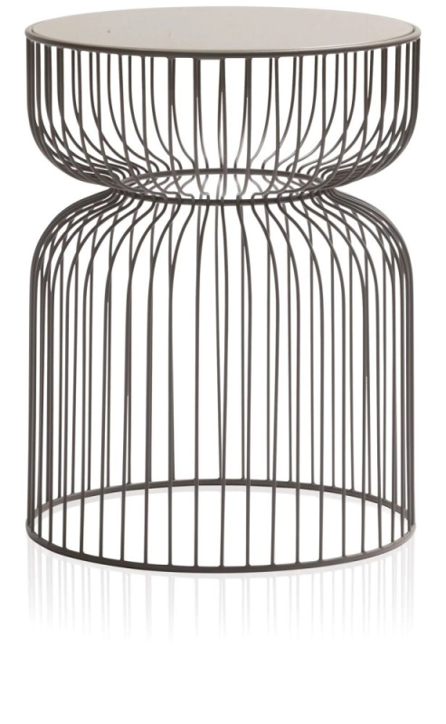 Bijzettafel Zina van COCOmaison kenmerkt zich door haar trendy design met een draadstalen frame en een glazen blad. De zachte taupe kleur geeft de tafel een industrieel tintje. Combineer Zina met bijzettafels en poefs in verschillende hoogtes en kleuren om een levendige set te creëren. Zina heeft een diameter van 35 cm en een hoogte van 45 cm, en is gemaakt van 60% metaal en 40% glas.