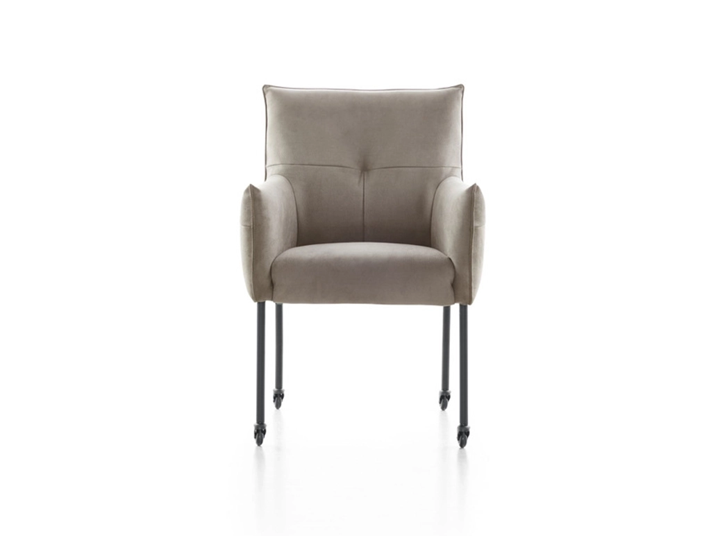 Armstoel Dutchz 2500 onderscheidt zich door een robuuste uitstraling en een uitstekend zitcomfort. De stoelen combineren prachtig aan een van de tafels uit de House of Dutchz collectie, en zorgen voor comfortabel (na)tafelen. U kunt kiezen voor vaste metalen poten in zwart of RVS, of voor metalen poten met skatewieltjes. En voor extra comfort is de armstoel ook uit te voeren in een brede variant.