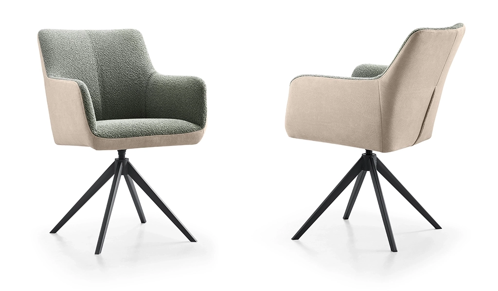 De Dutchz 5100 eetkamerstoel combineert niet alleen functionaliteit met modern design, maar tilt ook het comfort en de esthetiek van uw eetruimte naar een hoger niveau. Deze armstoel is voorzien van een eigentijdse zwart metalen onderstel waarin een geavanceerd terugdraaimechanisme is verwerkt wat in- en uitstappen gemakkelijker maakt.