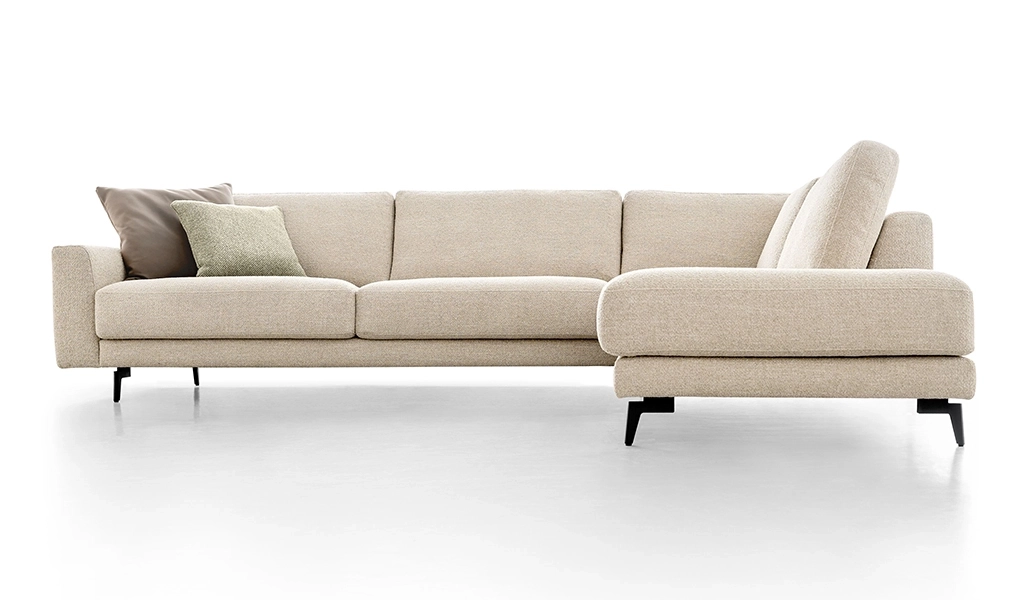 De Dutchz 114 heeft een tijdloze en moderne vormgeving en is volledig naar uw eigen smaak samen te stellen. Deze hoekbank is uitgevoerd in de luxe stof Ravi 10-liver, heeft lage rugkussens en een diepe (lounge)zit (59 cm). Daarnaast is de bank voorzien van zwevende zwarte metalen poten met een hoogte van 14 cm.