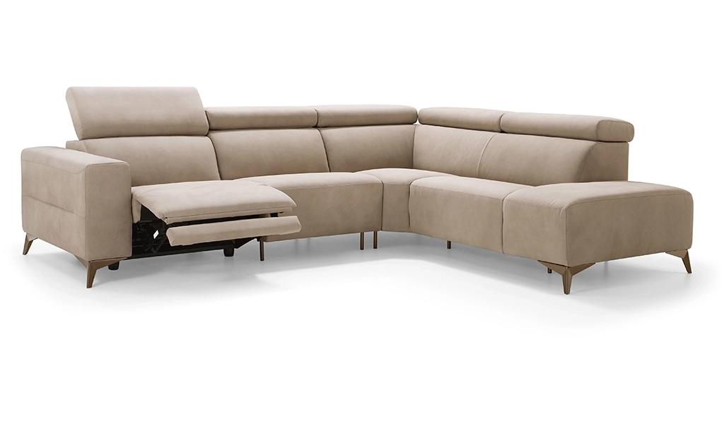 Hoekbank Dutchz 3100 kenmerkt zich door de vele elementen die leverbaar zijn om zo uw ideale bankcombinatie samen te stellen. Dit model is uitgevoerd in de luxe leersoort Shala kleur 81/1081 en voorzien van 1 elektrische relaxfunctie en verstelbare hoofdsteunen. De metalen poten in de kleur brons geven deze bank een luxe uitstraling. Met een scala aan stof- en leersoorten is de Dutchz 3100 helemaal naar uw wens samen te stellen.