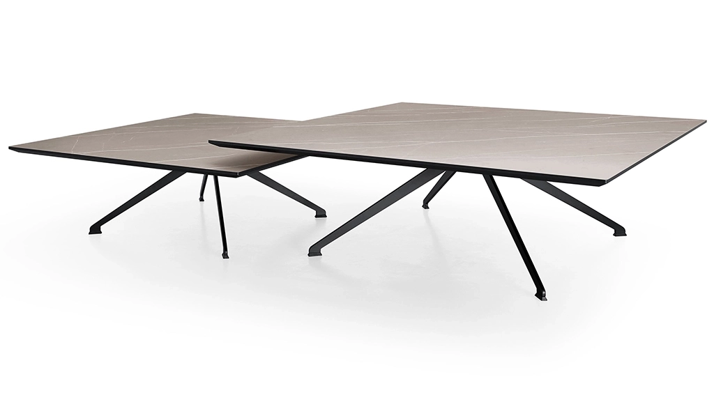 De Dutchz 2208 salontafels kenmerken zich door een ranke bladvorm en de metalen poten. Dit geeft ze een elegante uitstraling. De bladen zijn leverbaar in onderhoudsvriendelijk Fenix of HPL.