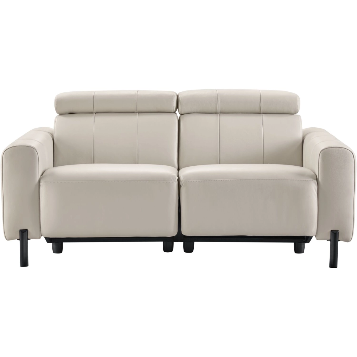 2-delig, uitgevoerd in leder buna kleur 625 met 2x een elektrische relaxfunctie en mat zwarte metalen poten.