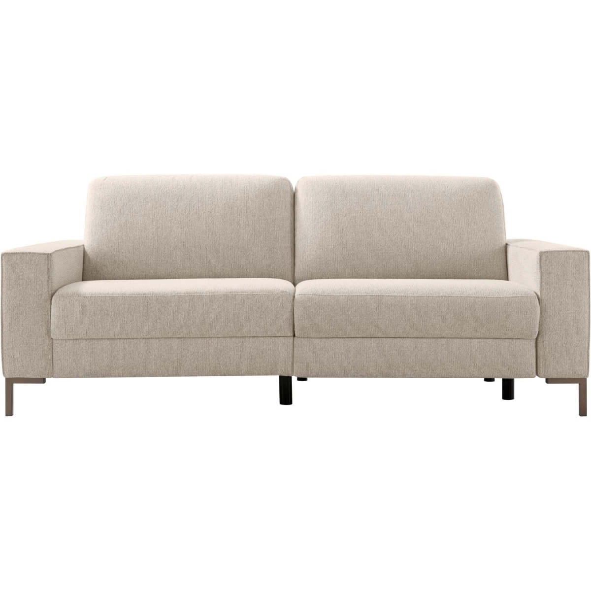 1,5 zits (90) arm links + 1,5 zits (90) arm rechts met elektrische relaxfunctie (2-motorig) en verstelbare hoofdsteun 55 cm, uitgevoerd in stof sneak 01-natural met arm C, een combinatie van koudschuim en viscoschuim in de zitting en metalen poten type MF