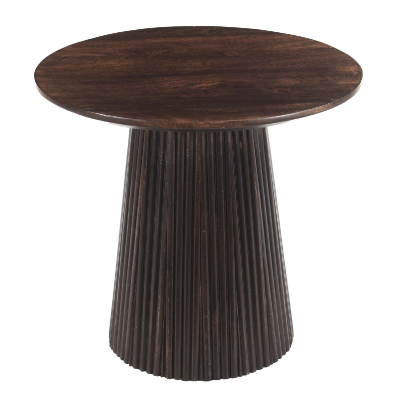 Met onze mooie bijzettafel Salvatora haal je niet alleen een functioneel meubelstuk in huis, maar ook een stijlvolle toevoeging aan je woonkamer. Het walnoot kleurige mangohouten bovenblad en de kegelvormige tafelpoot zorgen voor een moderne en tijdloze uitstraling. De Salvatora bijzettafel heeft een doorsnede van 50cm en is 46cm hoog. Combineer deze bijzettafel met de bijpassende salontafel voor de complete look! Of je nu op zoek bent naar een blikvanger in je woonkamer of gewoon een handige plek om je koffie neer te zetten, deze ronde bijzettafel is de ideale keuze.