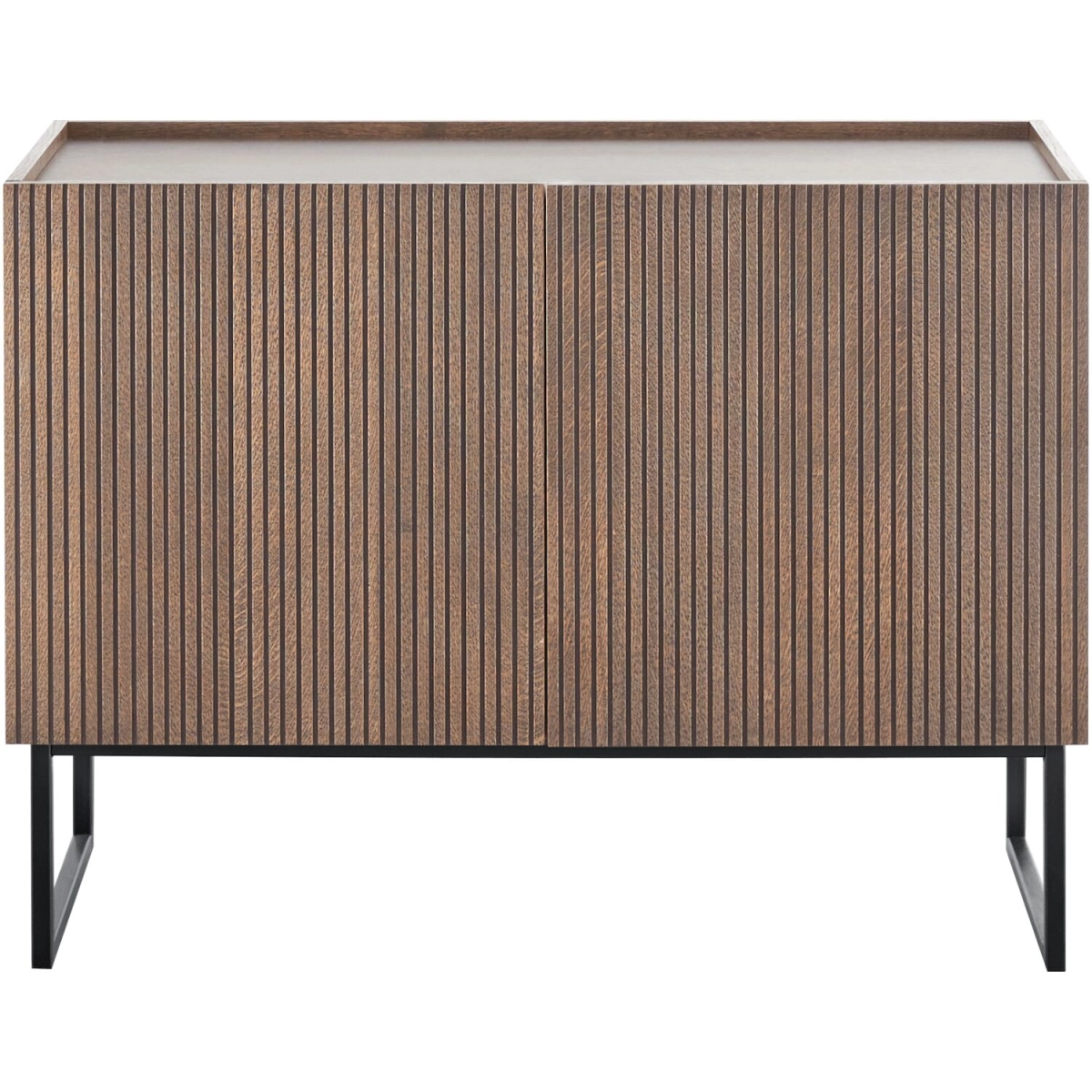 Dressoir Marandi small is onderdeel van een stoer en tijdloos woonprogramma. Dit dressoir is uitgevoerd in bruin eiken fineer en voorzien van 2 deuren met een push-to-open en soft-close systeem. De zwart metalen poten in combinatie met de mooie geribbelde structuur geven model Marandi een licht industriële look.