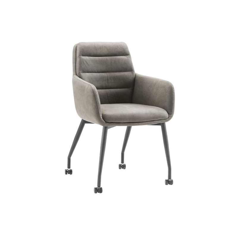 De armstoel Charda is uitgevoerd in de stof Zorro in de kleur antraciet. De rugleuning van de armstoel is voorzien van horizontale sierstiksels. De stoel heeft zwart metalen poten, wat zorgt voor een industriële look. Armstoel Charda wordt ongemonteerd geleverd, maar is met de bijgesloten handleiding zo gemonteerd of is het mogelijk om tegen een meerprijs de stoelen te laten monteren.