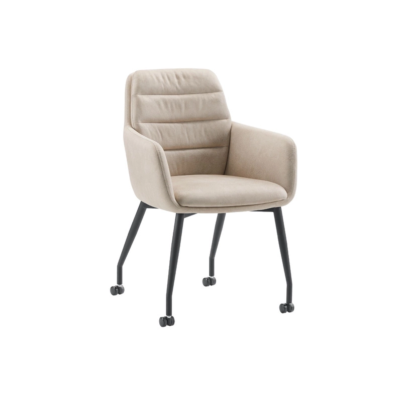 De armstoel Charda is uitgevoerd in de stof Zorro in de kleur sand. De rugleuning van de armstoel is voorzien van horizontale sierstiksels. De stoel heeft zwart metalen poten, wat zorgt voor een industriële look. Armstoel Charda wordt ongemonteerd geleverd, maar is met de bijgesloten handleiding zo gemonteerd of is het mogelijk om tegen een meerprijs de stoelen te laten monteren.