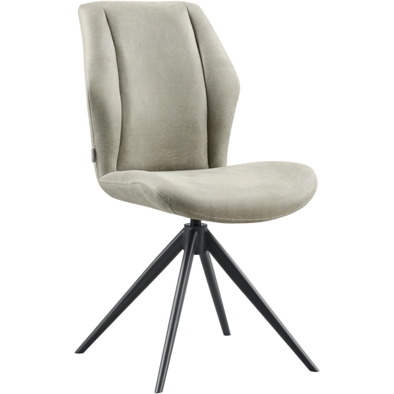 Eetkamerstoel Dayla kent vele mogelijkheden. Met zijn mooie vormen is dit model een echte eye-catcher voor aan je eettafel. Of je nu een stoel wenst met of zonder armleuning, met metalen of een eikenhouten onderstellen. Alles is mogelijk! Deze eetkamerstoel is uitgevoerd in een grijze stof met mooie verticale stiksels op de rugleuning en een zwart metalen draaipoot.