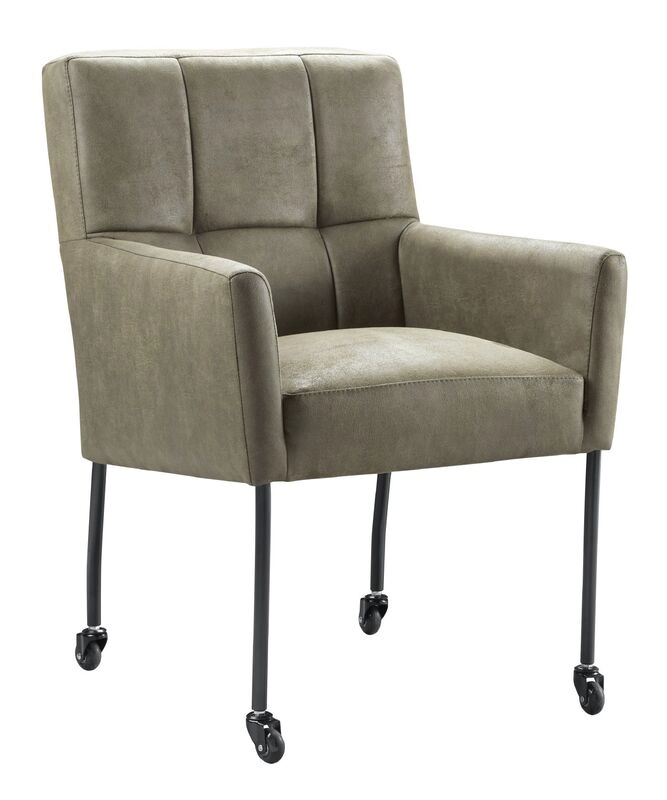 De Eetkamerstoel Janinto in groen microleder van het merk INHOUSE is een prachtig voorbeeld van eigentijds design met een warme uitstraling. Het model heeft een stoere uitstraling door de volle rug en zitting, gecombineerd met zwart metalen poten die zijn uitgerust met skatewielen. Deze details zorgen ervoor dat de stoel niet alleen mooi oogt, maar ook praktisch is in gebruik.