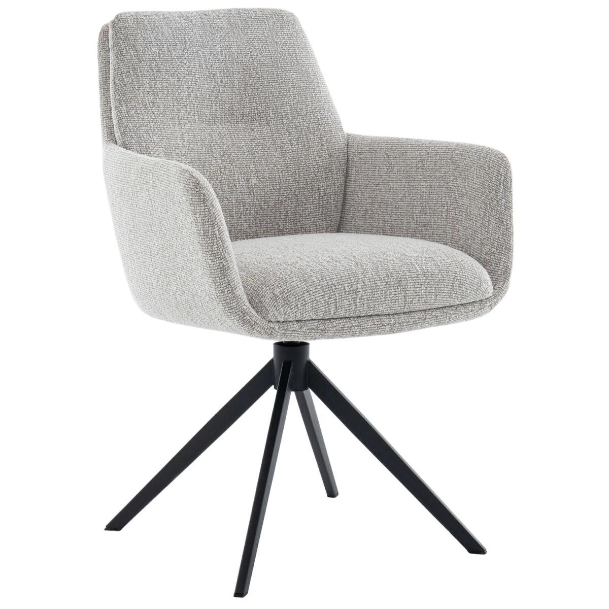 Armstoel Jasmia is met zijn moderne uiterlijk een echte parel voor in je eetkamer. Deze tijdloze eetkamerstoel is uitgevoerd in een prachtige beige bouclé stof en een zwart metalen onderstel inclusief terugdraaimechanisme. Hierdoor zal de stoel altijd weer naar zijn oorspronkelijke positie terugdraaien.
